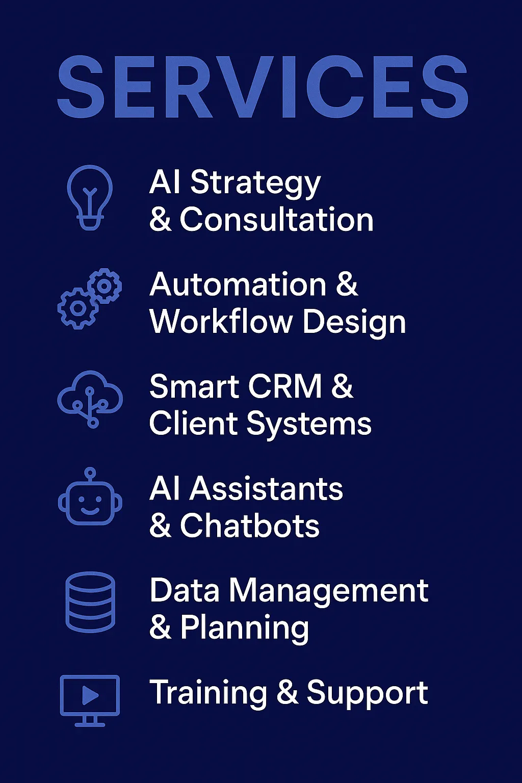 Our goal is to make AI affordable for small businesses and nonprofits. Packages begin with simple automations and CRM setups, and scale based on your needs. Most clients end up saving far more time and operational cost than they invest — making AI one of the highest-ROI upgrades for a modern business.